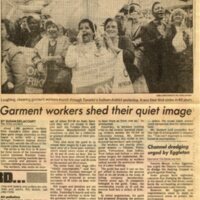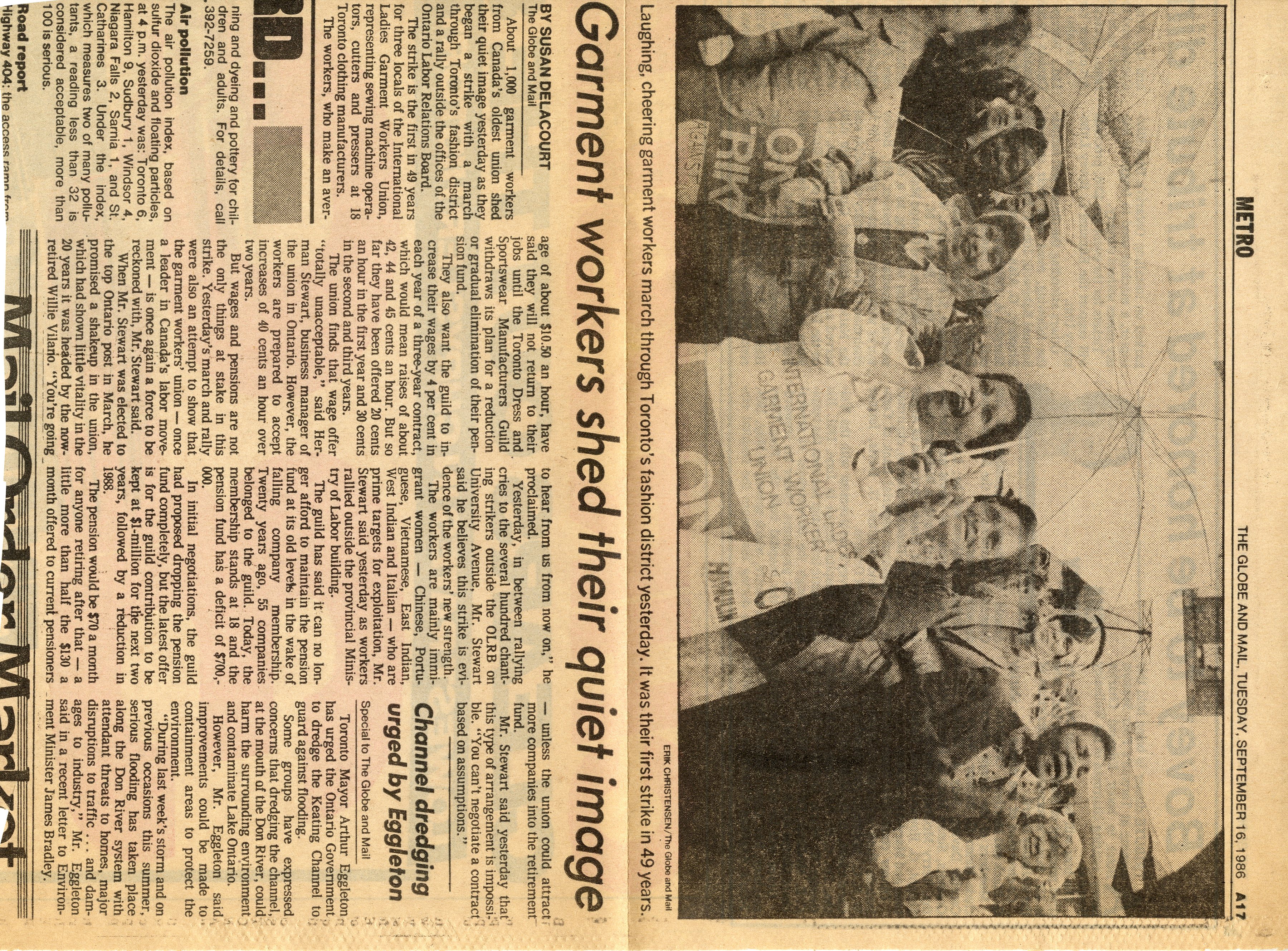 "Garment workers shed their quiete image" by Susan Delacourt. The Globe and Mail. September 16, 1986.