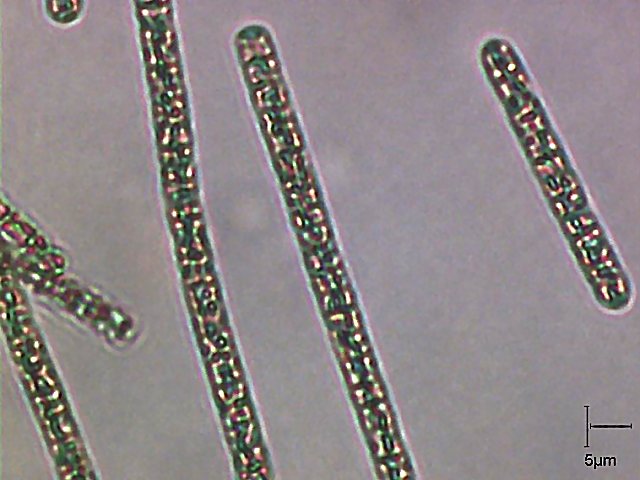 (EN) : Several straight trichomes, which do not possess specialized cells such as heterocysts and akinetes, but are phototactic and their cells contain gas vacuoles, called protoplasts, that play an important role in their buoyancy.