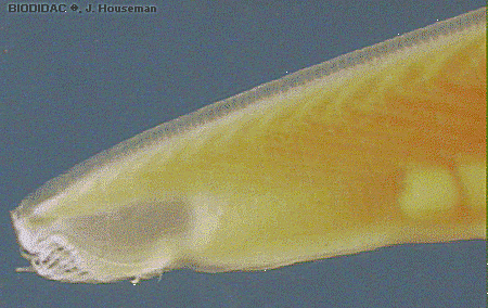 Attribution: Branchiostoma lanceolatum, https://omeka.uottawa.ca/biodidac/items/show/3451, Jon Houseman, BIODIDAC, CC BY-NC 4.0, https://creativecommons.org/licenses/by-nc/4.0/