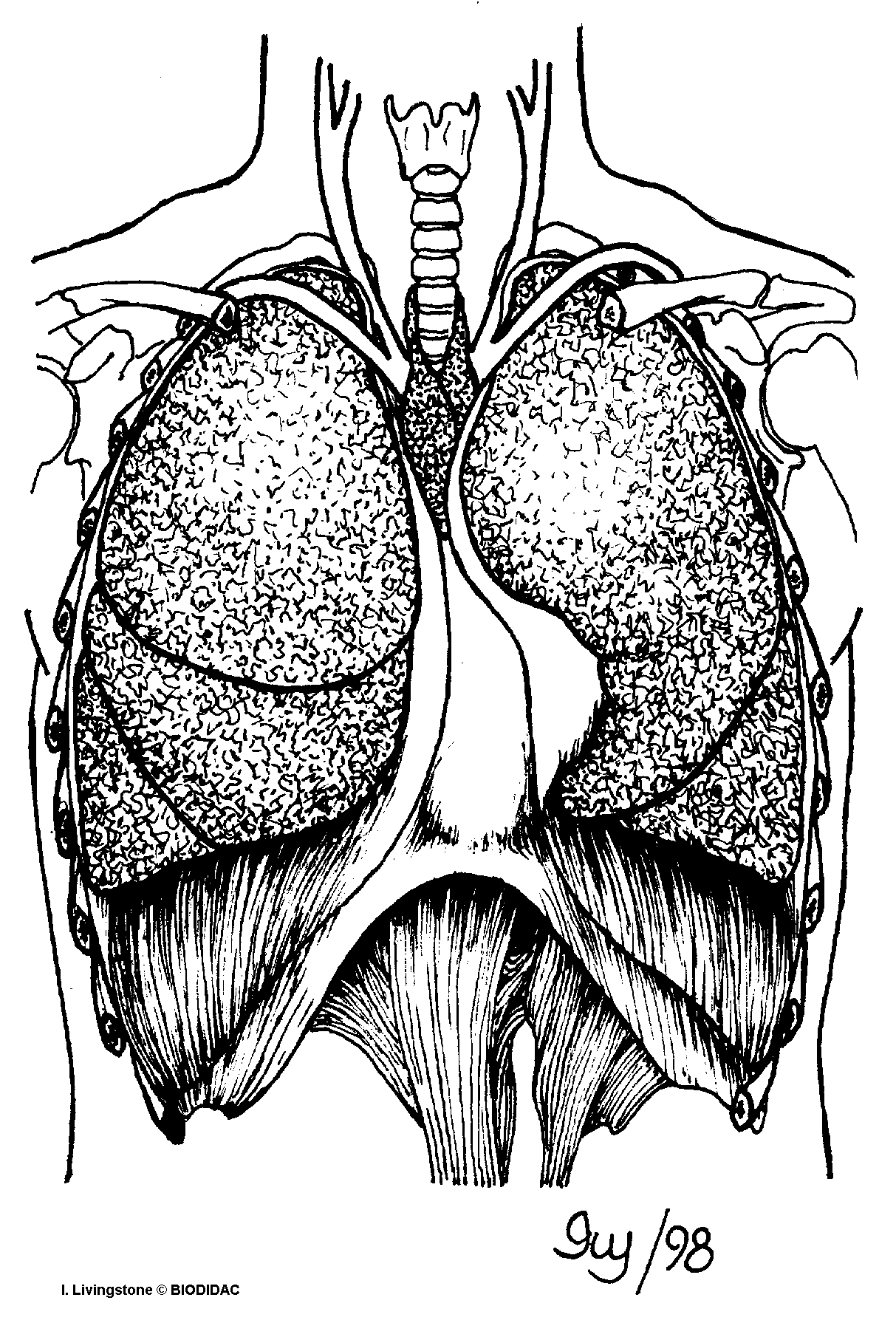 (EN) : Anatomical characteristics of the thoracic cavity showing lungs and diaphragm.