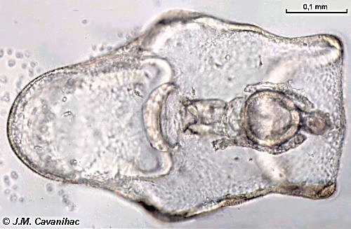 (FR) : Anatomie interne et externe: Structures principales d'un bipinnaria (larve).