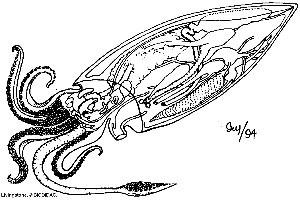 Attribution: squid / calmar, https://omeka.uottawa.ca/biodidac/items/show/5799, Ivy Livingstone, BIODIDAC, CC BY-NC 4.0, https://creativecommons.org/licenses/by-nc/4.0/