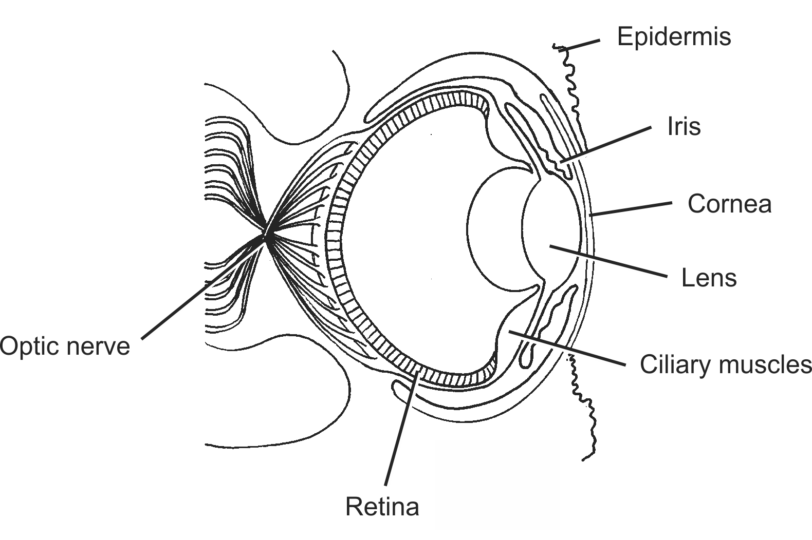 Étiquettes (FR) : Rétine, Muscles ciliaires, Iris, Nerf optique, Épiderme, Cornée, Lentille