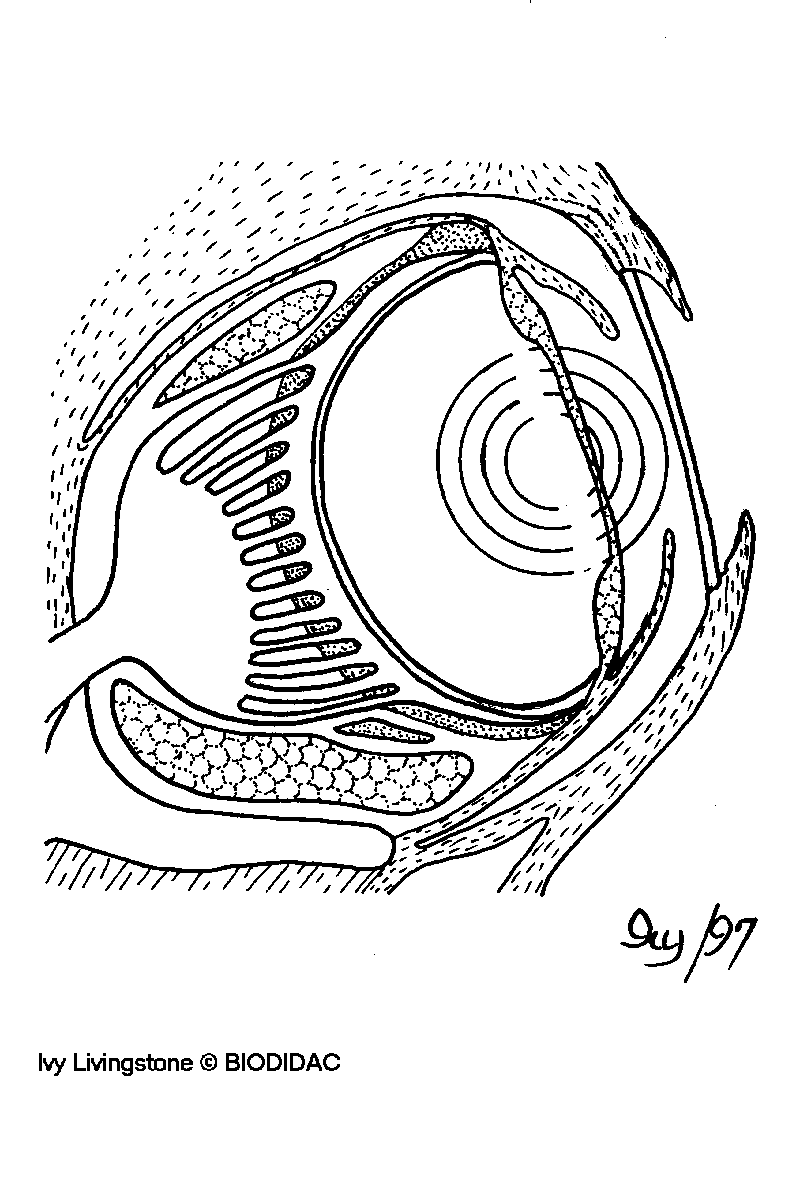 (EN) : Cuttlefish eye: Internal anatomy showing the main structures and innervation.