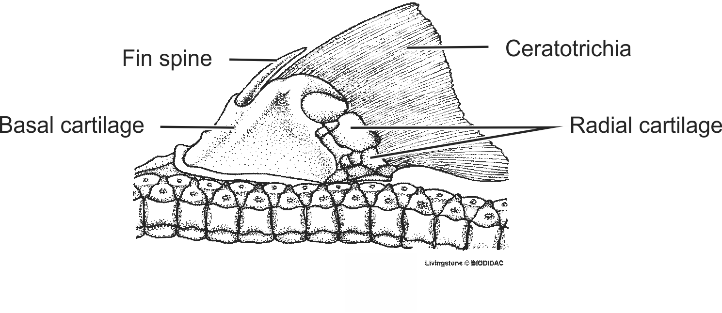 Labels (EN) : Basal cartilage, Radial cartilage, Ceratotrichia, Fin spine