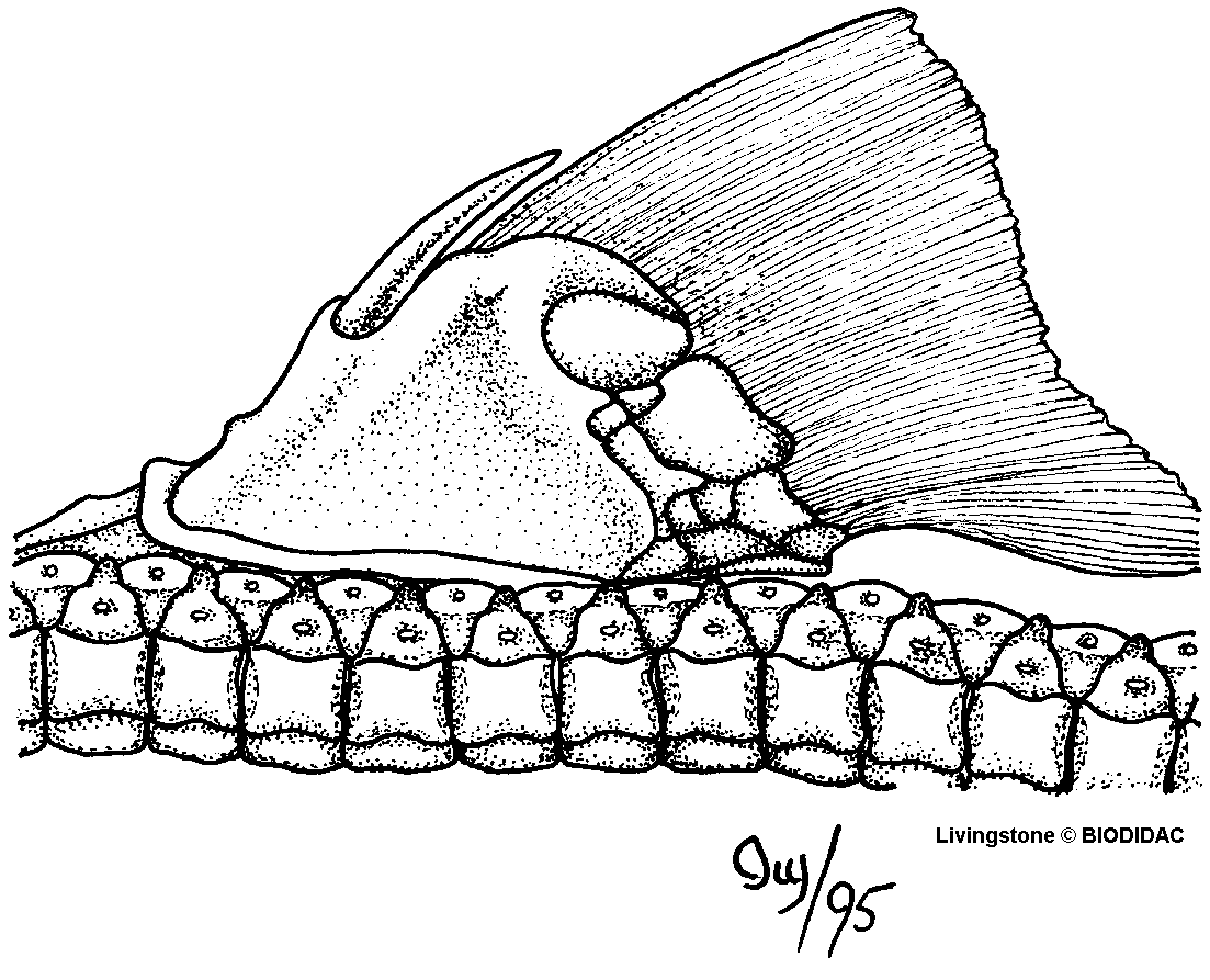 Étiquettes (FR) : Pièce cartilagineuse basale, Cartilage radial, Cératotriches, Épine de nageoire