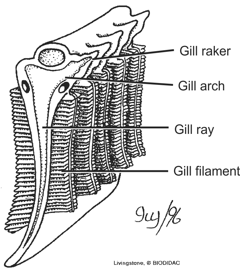 Labels (EN) : Gill filament, Gill ray, Gill arch, Gill raker