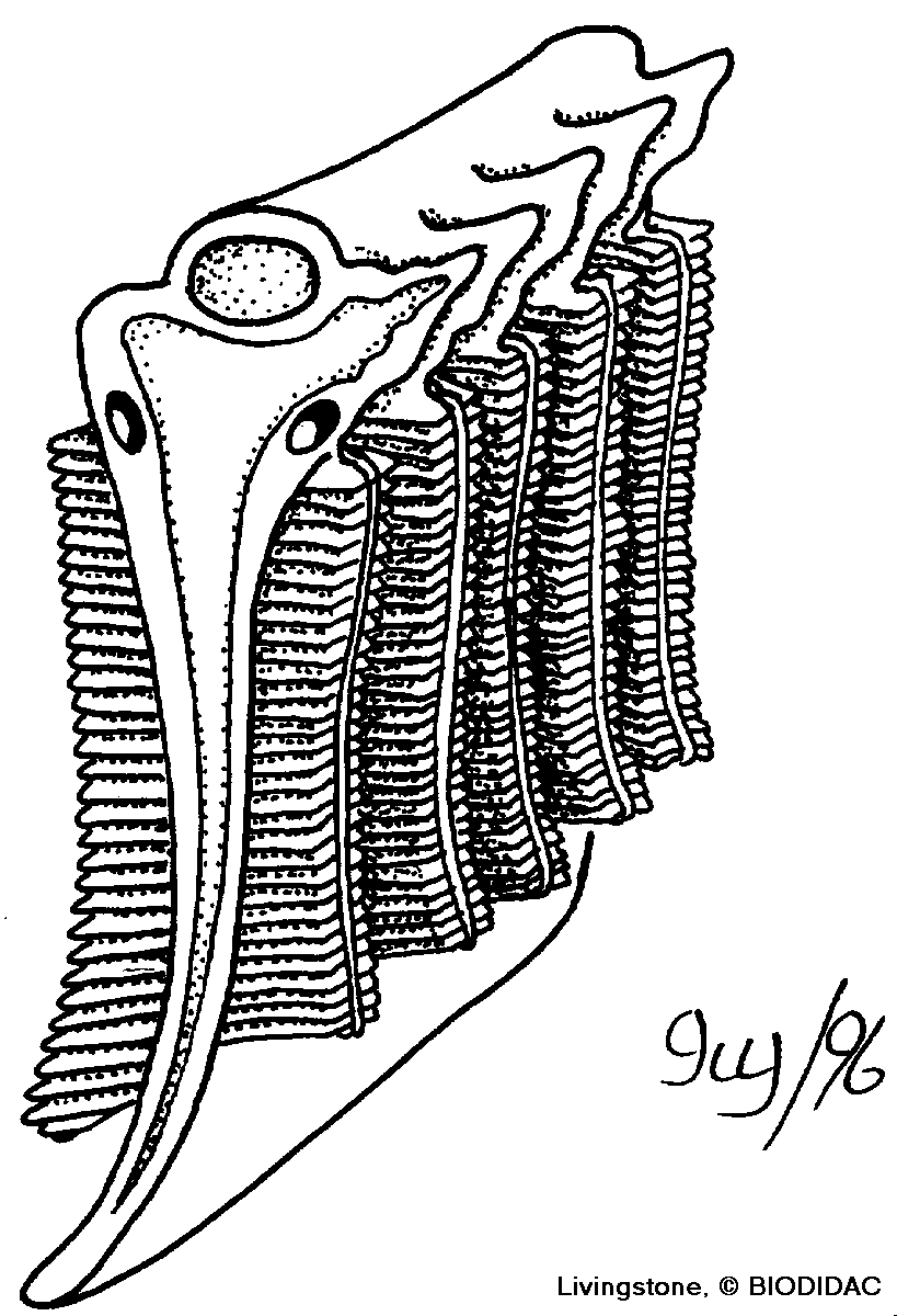 Étiquettes (FR) : Filament branchial, Arc branchial, Branchicténie, Rayon squelettique branchial