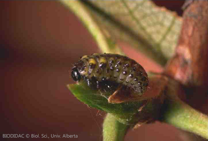 (EN) : External anatomy: Larva feeding on a black poplar leaf.