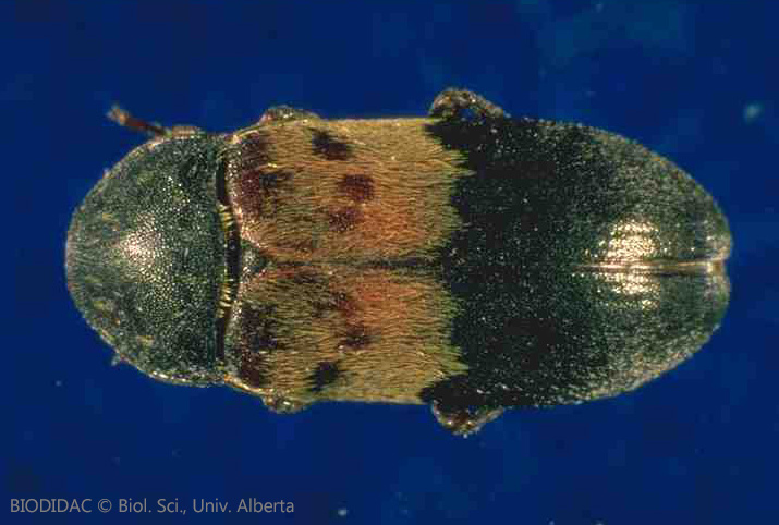 Attribution: dermestid or skin beetle or carpet beetle or larder beetle or leather beetle or khapra beetle / dermestidé ou dermeste, https://omeka.uottawa.ca/biodidac/items/show/5912, Department of Biology (University of Alberta), BIODIDAC, CC BY-NC 4.0, https://creativecommons.org/licenses/by-nc/4.0