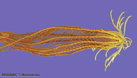 (FR) : Anatomie externe : Animal entier montrant les bras, les pinnules, le calice et les cirres.