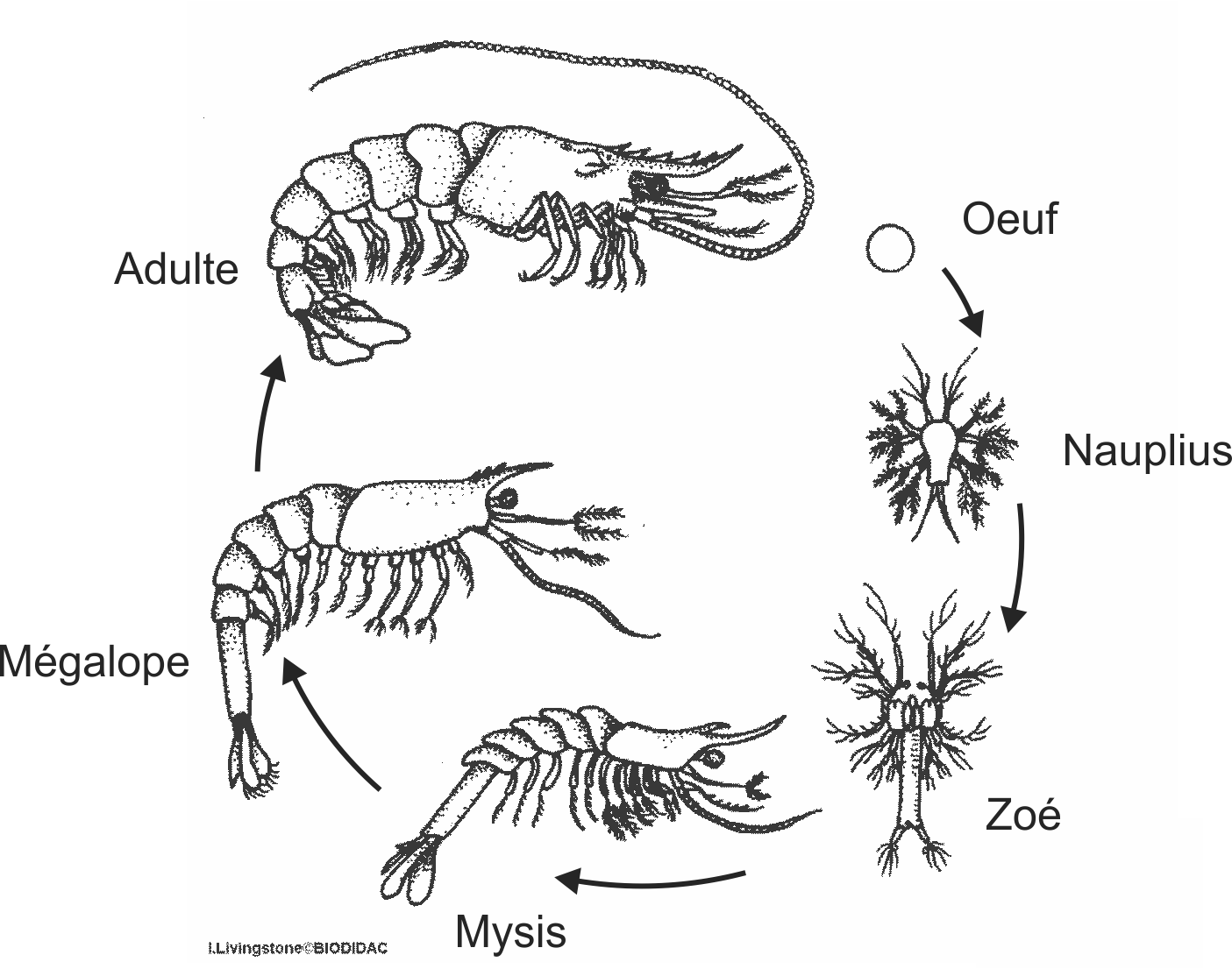 Étiquettes (FR) : Mysis, Zoé, Nauplius, Oeuf, Mégalope, Adulte