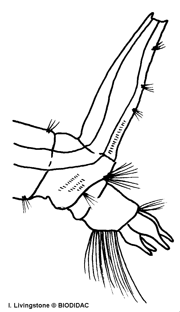(EN) : Close-up view of the anal papillae of mosquito larvae, which are multifunctional organs that have important roles in osmoregulation and ammonia excretion: This is part of a set of three images (Dipt004b.gif, Dipt006b.gif, Dipt007b.gif) that show the changes in the size of the anal papillae of a mosquito when raised in different water salinities.