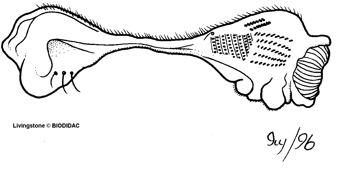 (EN) : Haltere showing the locations of the major sensory bristles.