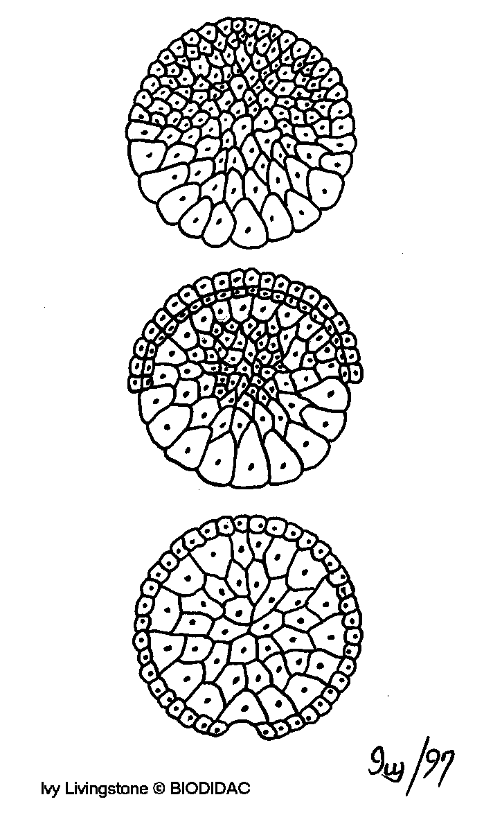 (EN) : Organism changing from a solid form to an invaginated form when feeding.