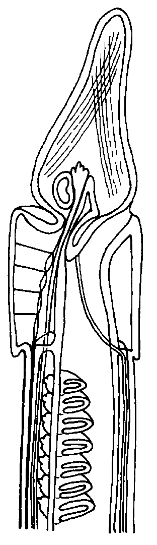 (EN) : Internal anatomy: Main features of the anterior region, including the head and collar. No labels (image 1) + English labels (image 2) + French labels (image 3) + Colored organ systems (image 4).