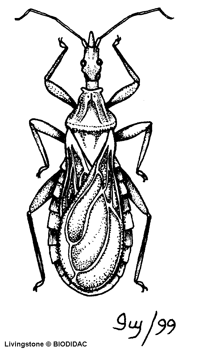 Attribution: triatomine bug or triatomine or conenose bug or kissing bug or vampire bug / triatome ou punaise triatomine ou punaise de baiser ou punaise diabolique, https://omeka.uottawa.ca/biodidac/items/show/6242, Ivy Livingstone, BIODIDAC, CC BY-NC 4.0, https://creativecommons.org/licenses/by-nc/4.0/