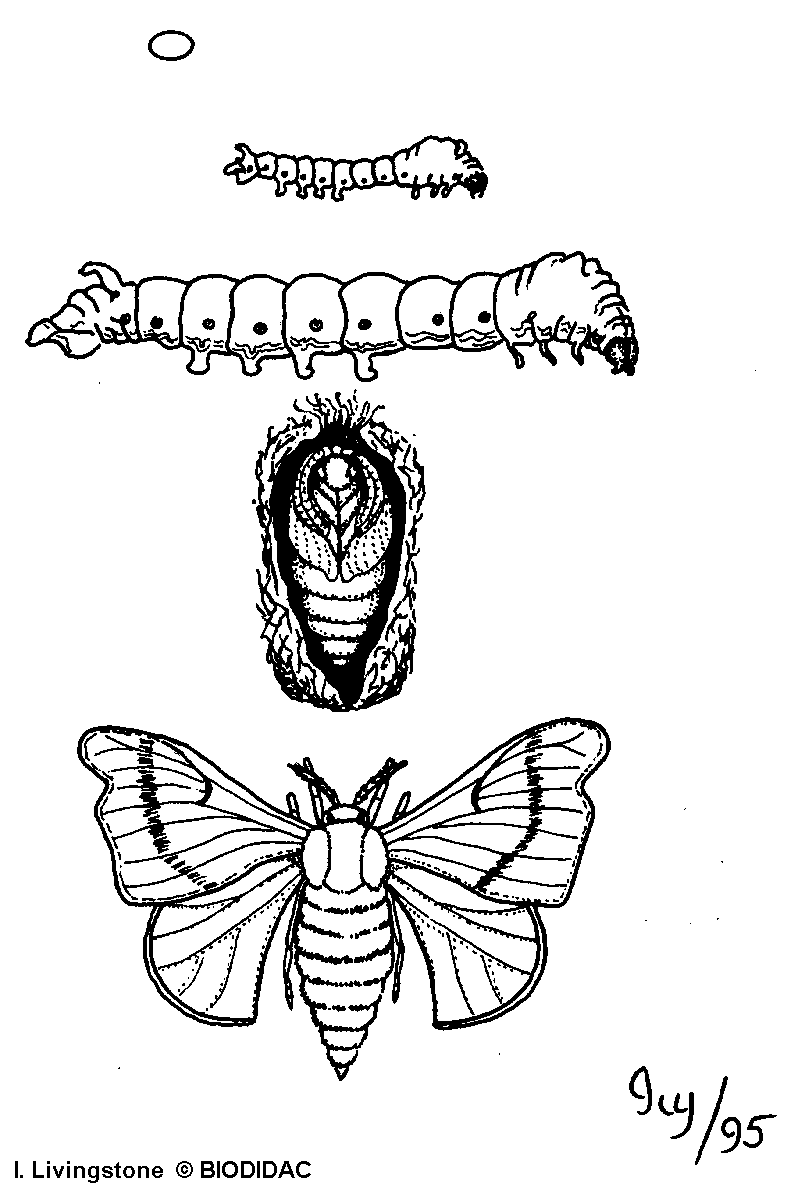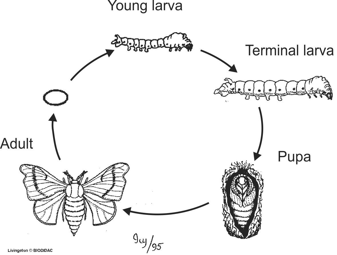 Labels (EN) : Pupa, Terminal larva, Young larva, Adult