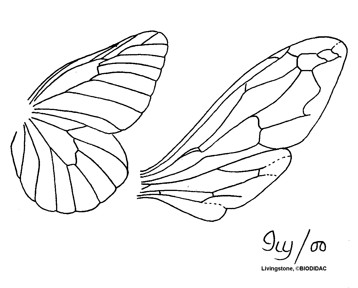 (EN) : Wing: Comparaison between that of a butterfly (Lepidoptera) and bee (Hymenoptera).