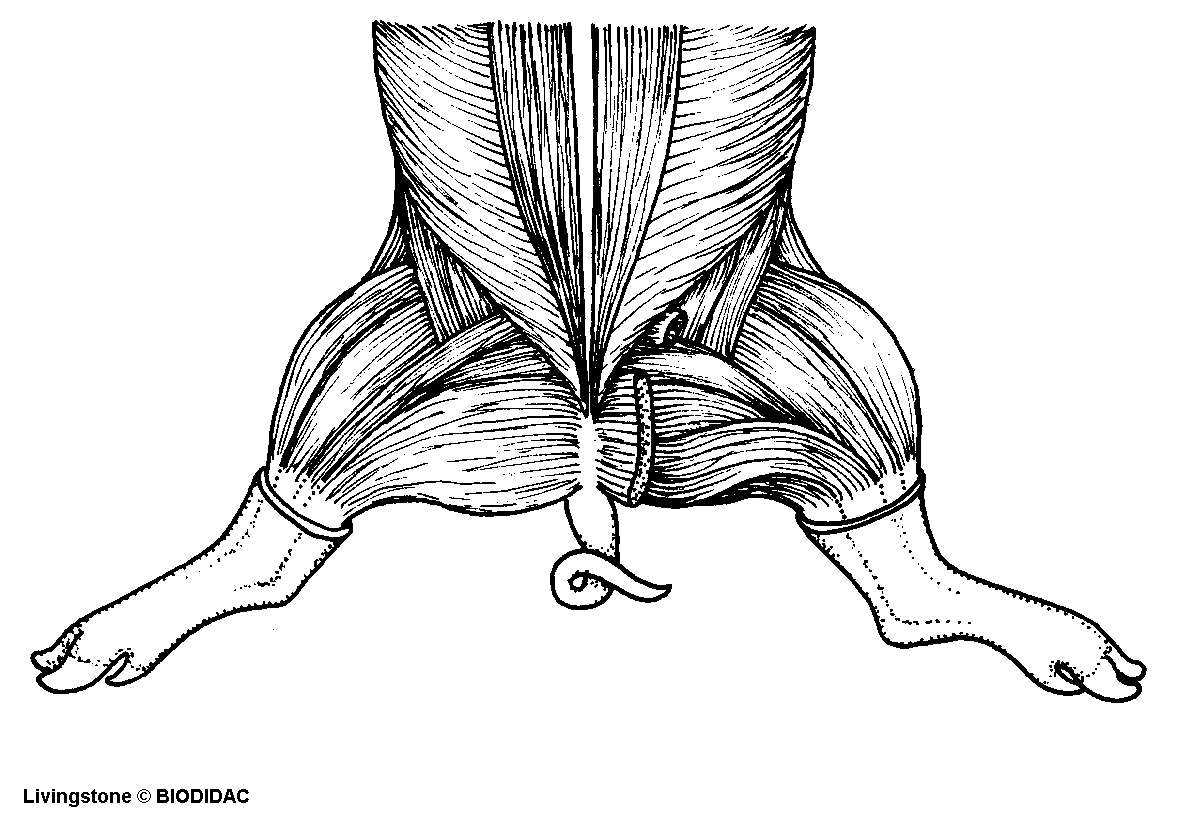 (EN) : Fetal pig: Muscles on the dorsal side of the lower back and hindlimbs.