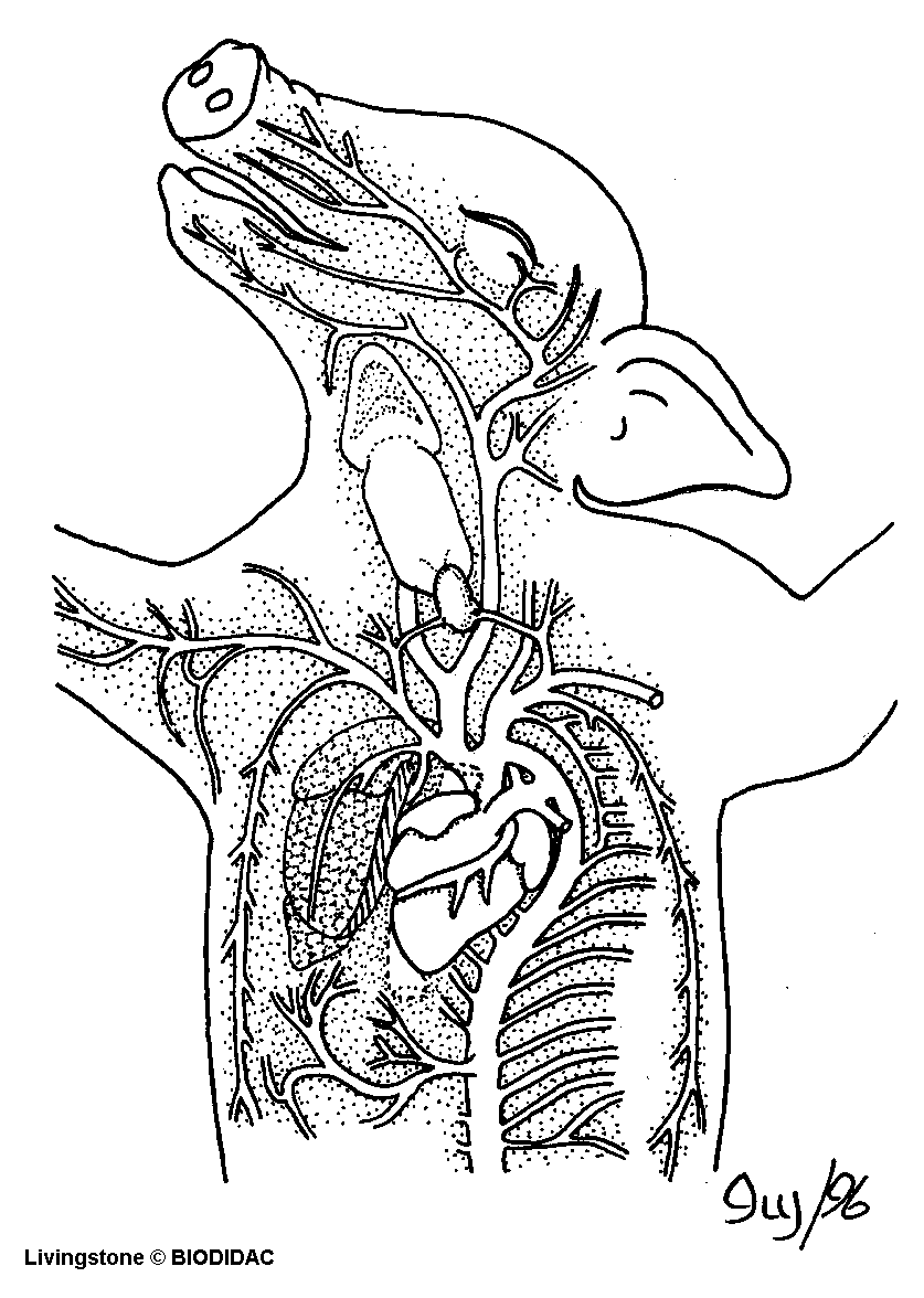 (EN) : Fetal pig: Arterial circulatory system of the head and thorax.