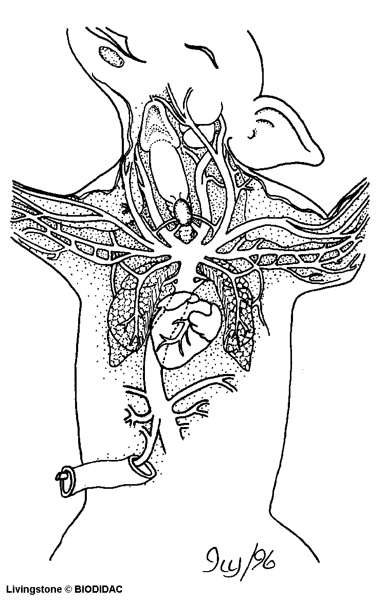 (EN) : Fetal pig: Ventral view of the venous circulatory system of the anterior region.