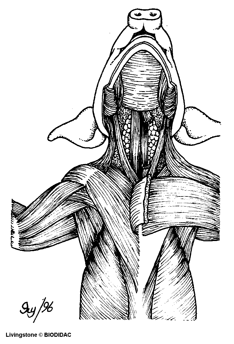 (EN) : Fetal pig: Ventral view of the muscles of the thorax and forelimbs.