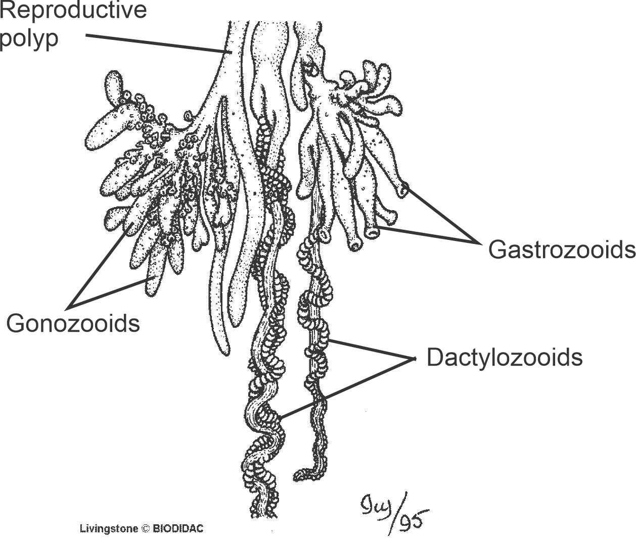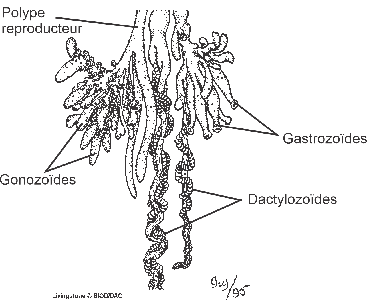 Étiquettes (FR) : Polype reproducteur, Gonozoïdes, Dactylozoïdes, Gastrozoïdes