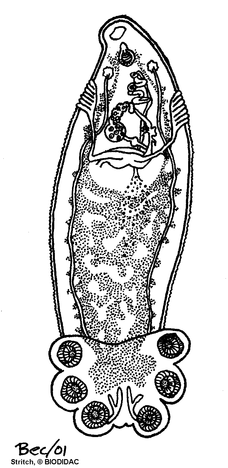 Attribution: monogenean or monogenetic fluke or fish fluke / monogène, https://omeka.uottawa.ca/biodidac/items/show/6596, Rebecca Stritch, BIODIDAC, CC BY-NC 4.0, https://creativecommons.org/licenses/by-nc/4.0/