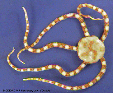 Attribution: brittle star or serpent star or ophiuroid / ophiure, https://omeka.uottawa.ca/biodidac/items/show/6641, Jon Houseman, BIODIDAC, CC BY-NC 4.0, https://creativecommons.org/licenses/by-nc/4.0/