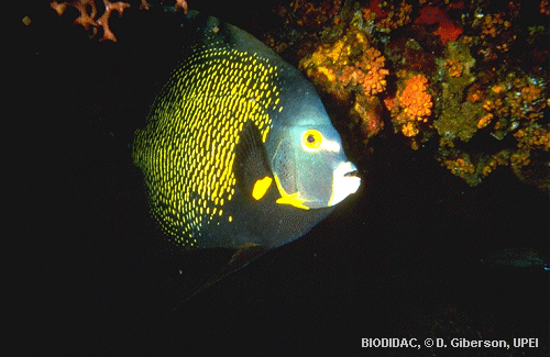 Attribution: Pomacanthus paru, https://omeka.uottawa.ca/biodidac/items/show/6709, Donna Giberson, BIODIDAC, CC BY-NC 4.0, https://creativecommons.org/licenses/by-nc/4.0/