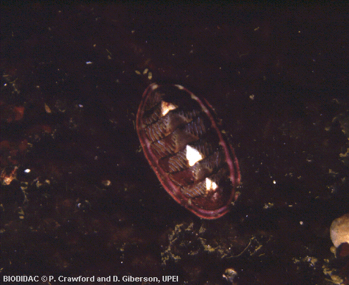 Attribution: chiton or sea cradle or coat-of-mail shell or suck-rock or loricate or polyplacophoran or polyplacophore / chiton ou polyplacophore ou oscabrion, https://omeka.uottawa.ca/biodidac/items/show/6737, Pat Crawford and Donna Giberson, BIODIDAC, CC BY-NC 4.0, https://creativecommons.org/licenses/by-nc/4.0/