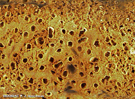 (EN) : Unidentified sponge : Close-up view of the surface showing excurrent oscula.