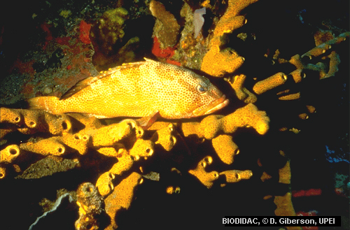(EN) : Specimen with a grouper: Photo taken near Saba island in the Caribbeans.