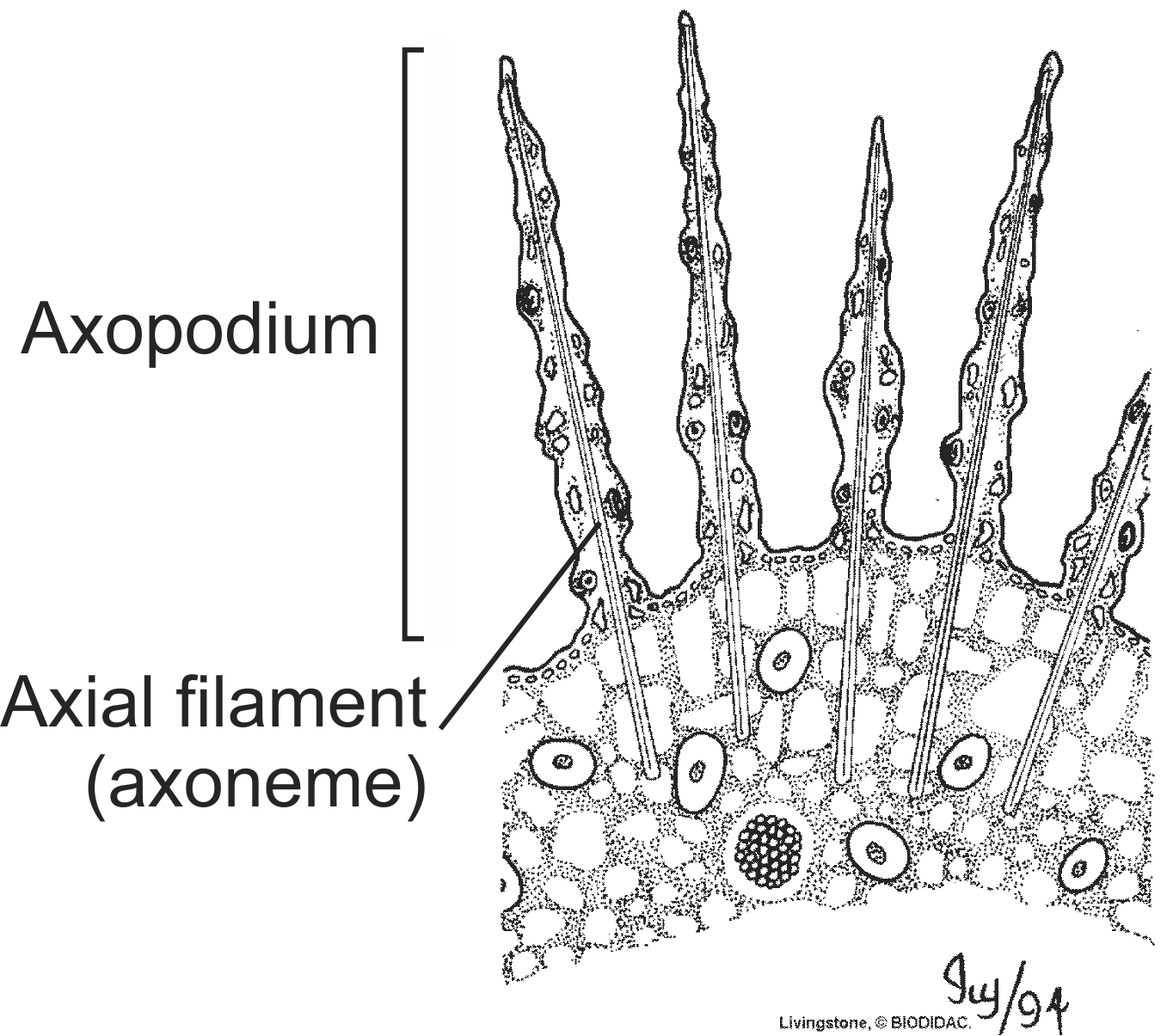 Labels (EN) : Axopodium, Axial filament (axoneme)