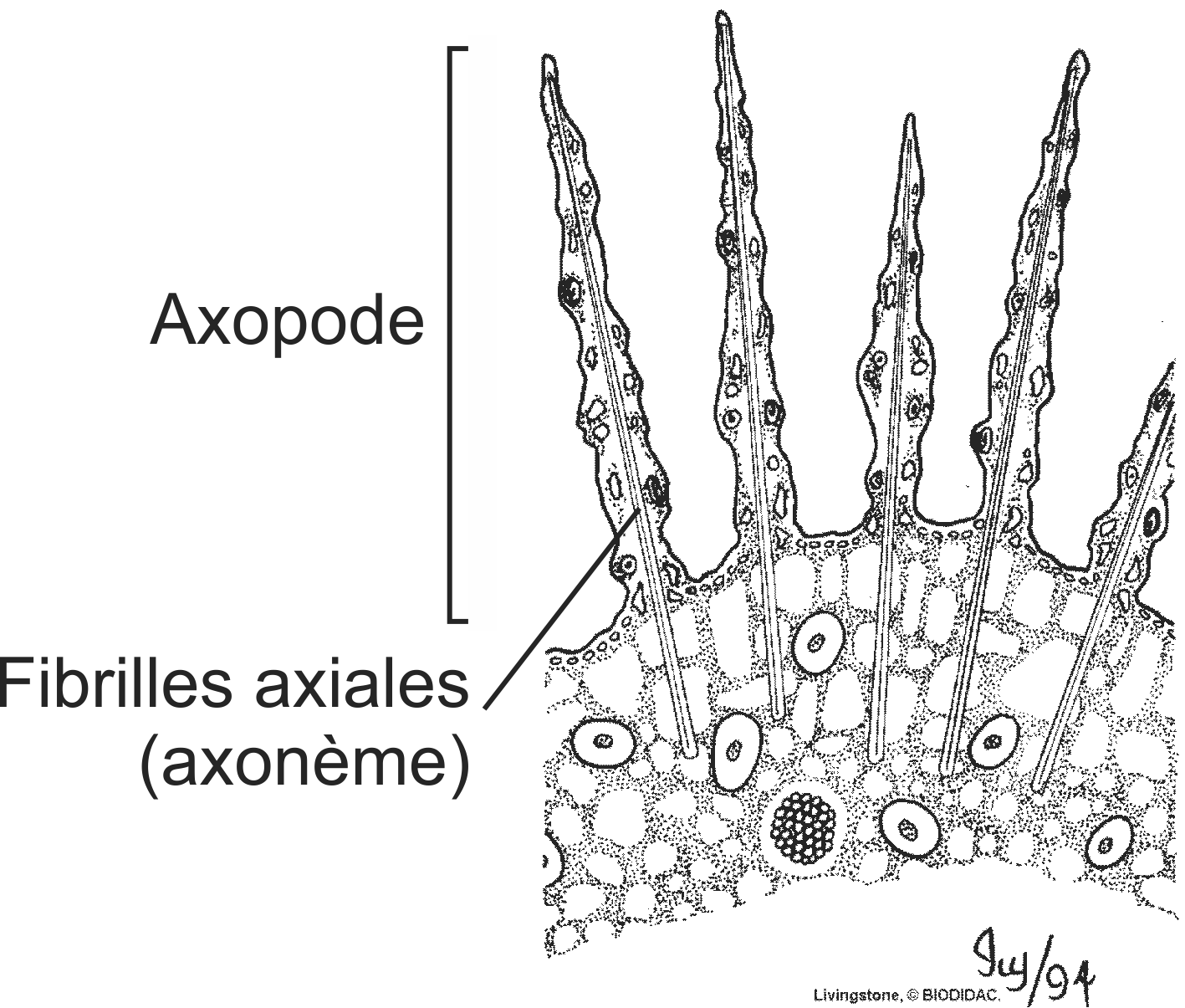 Étiquettes (FR) : Axopode, Fibrilles axiales (axonème)