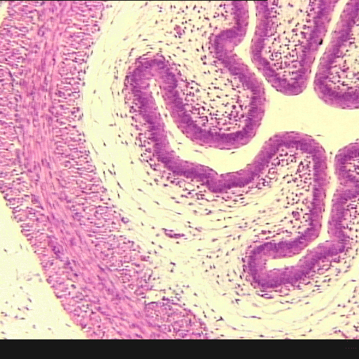 (EN) : Cross section of a rabbit oesophagus (Hematoxylin and eosin stain (H&E), x10, Slide RCB-20 K6.1): General view.