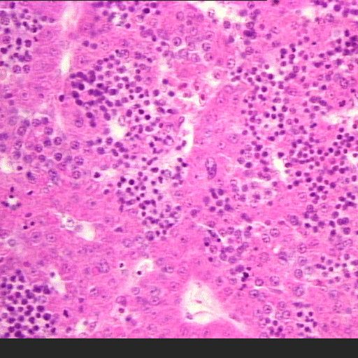 (EN) : Cross section of the liver from a foetal swine (Hematoxylin and eosin stain (H&E), x40, Slide RCB-36 I2).