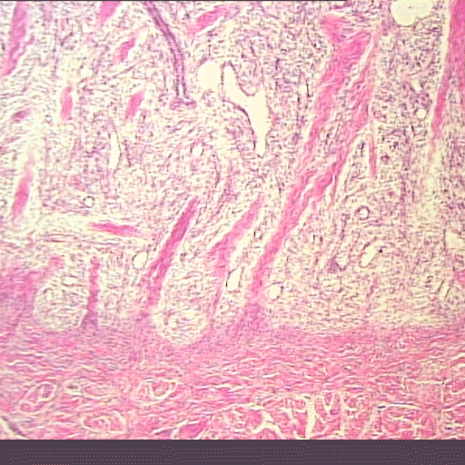 (EN) : Close-up view of a cross section through the penis of a foetal bull (Hematoxylin and eosin stain (H&E), x10, Slide RCB-35 O14.2).