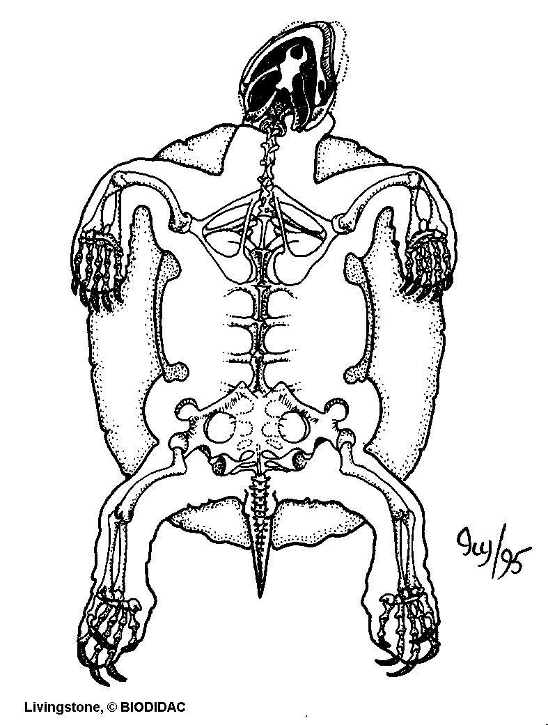 (EN) : External anatomy: General features of the axial and appendicular skeleton of the ventral side.