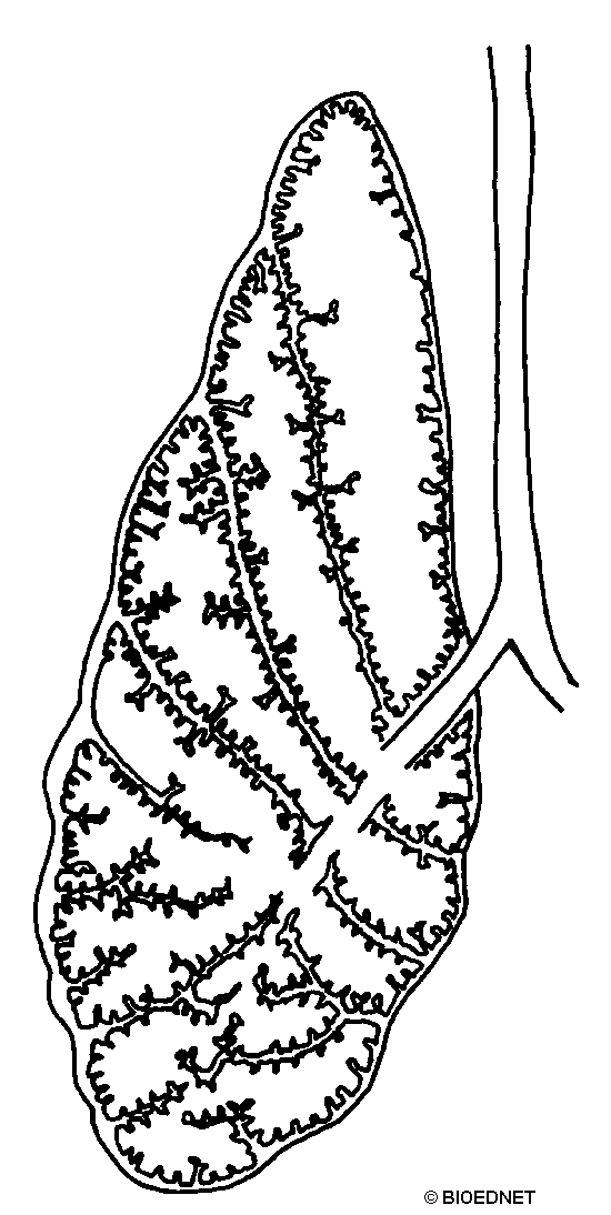 (FR) : Poumon : Coupe longitudinale montrant les caractéristiques générales.