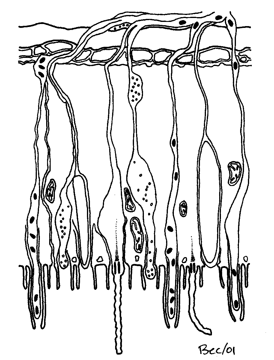 (EN) : Dual adhesive gland system in some free-living flatworm: General features. It s used for temporary attachment and release, involving three cell types (adhesive gland, releasing gland, anchor cell) with the adhesive gland secreting adhesive proteins, the releasing gland secreting a molecule or signal to trigger detachment, and the anchor cell providing structural support.
