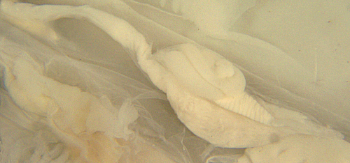 (EN) : Internal anatomy of an male adult specimen: General view inside the mantle near the middle showing male reproductive structures, including the sperm duct, spermatophoric organ, Needham's or spermatophoric sac, and penis.