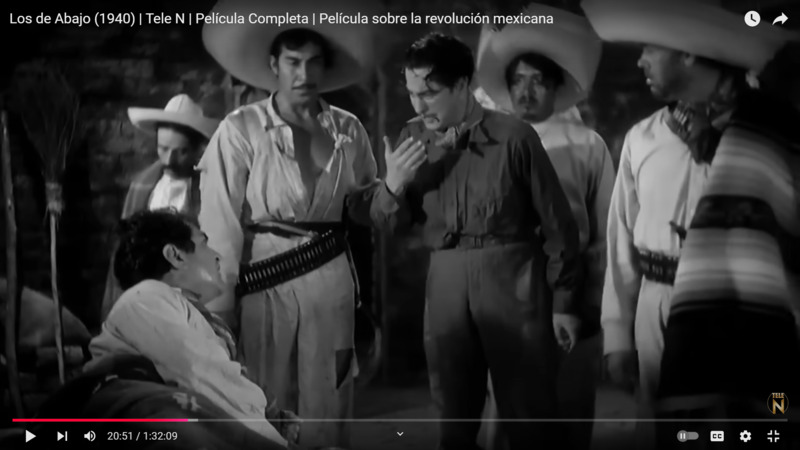 En esta captura de pantalla, Luis, un desertor del ejército federal, se enfrenta a su destino mientras Demetrio, el líder revolucionario, decide si lo ejecuta o no (Los de Abajo 00:20:51). Los revolucionarios dispararon a Luis en una pierna cuando se acercaba al campamento, un acto que refleja el uso de la violencia como estrategia de supervivencia y autodefensa. Esta escena muestra cómo la brutalidad no es exclusiva de un bando en la Revolución Mexicana, sino que se convierte en una herramienta compartida en un ambiente de desconfianza y desesperación.