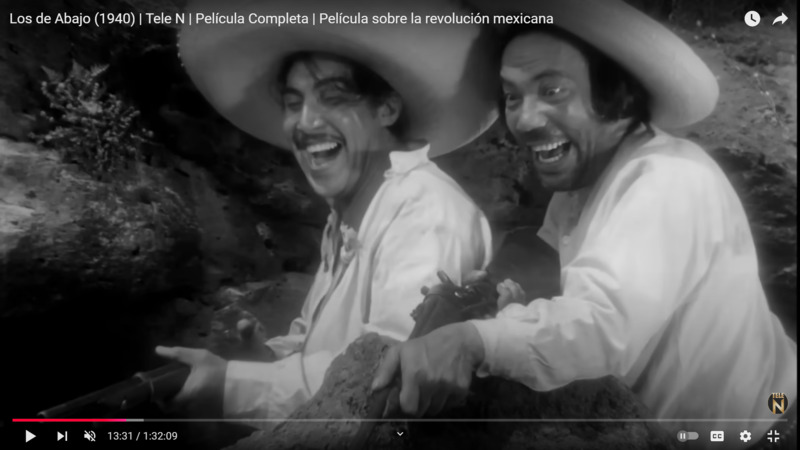 En esta captura de pantalla, los revolucionarios convierten la violencia en un juego macabro, compitiendo por ver quién mata a más federales (Los de Abajo 00:13:31). Aunque la escena refleja la brutalidad inherente al conflicto revolucionario, también evidencia cómo la exposición constante a la violencia deshumaniza a los combatientes y transforma los actos de guerra en actividades cotidianas. Este comportamiento perturbador se justifica en el contexto de la lucha por la libertad contra la dictadura, pero también plantea interrogantes sobre la moralidad y las consecuencias psicológicas de la guerra.