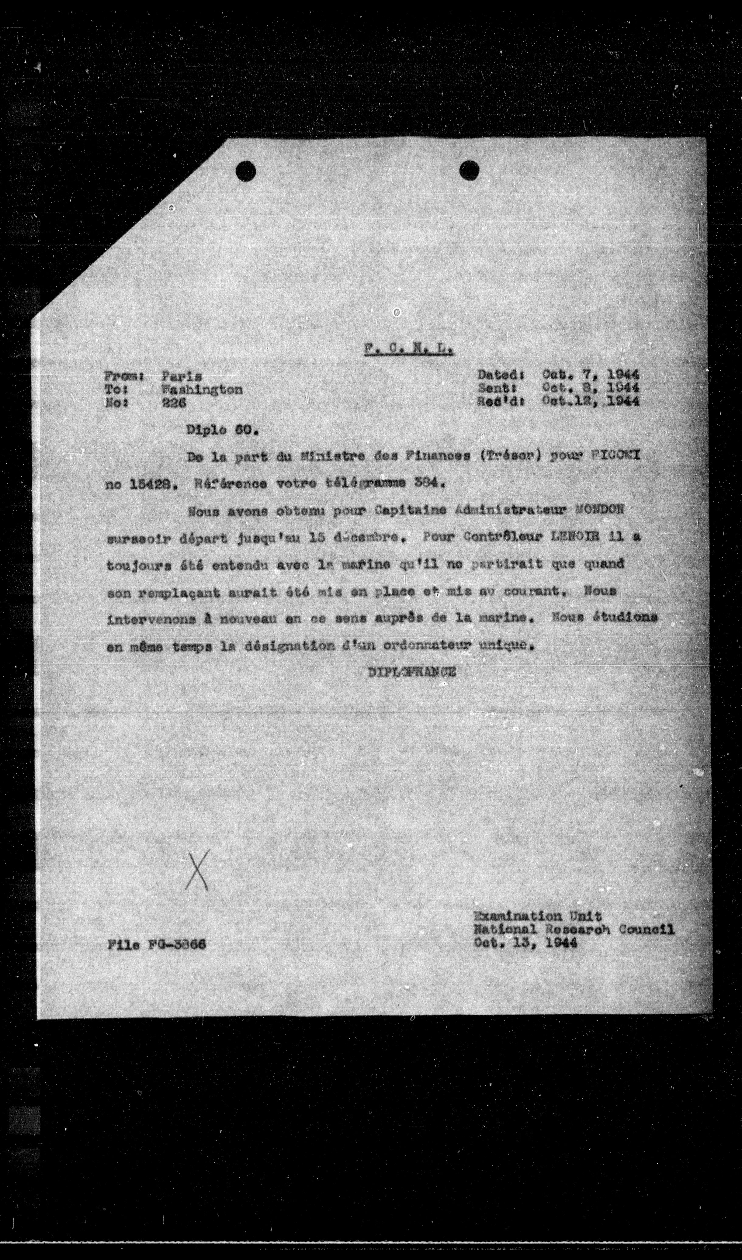 | From: | Paris | Dated: | Oct. 7, 1944 |