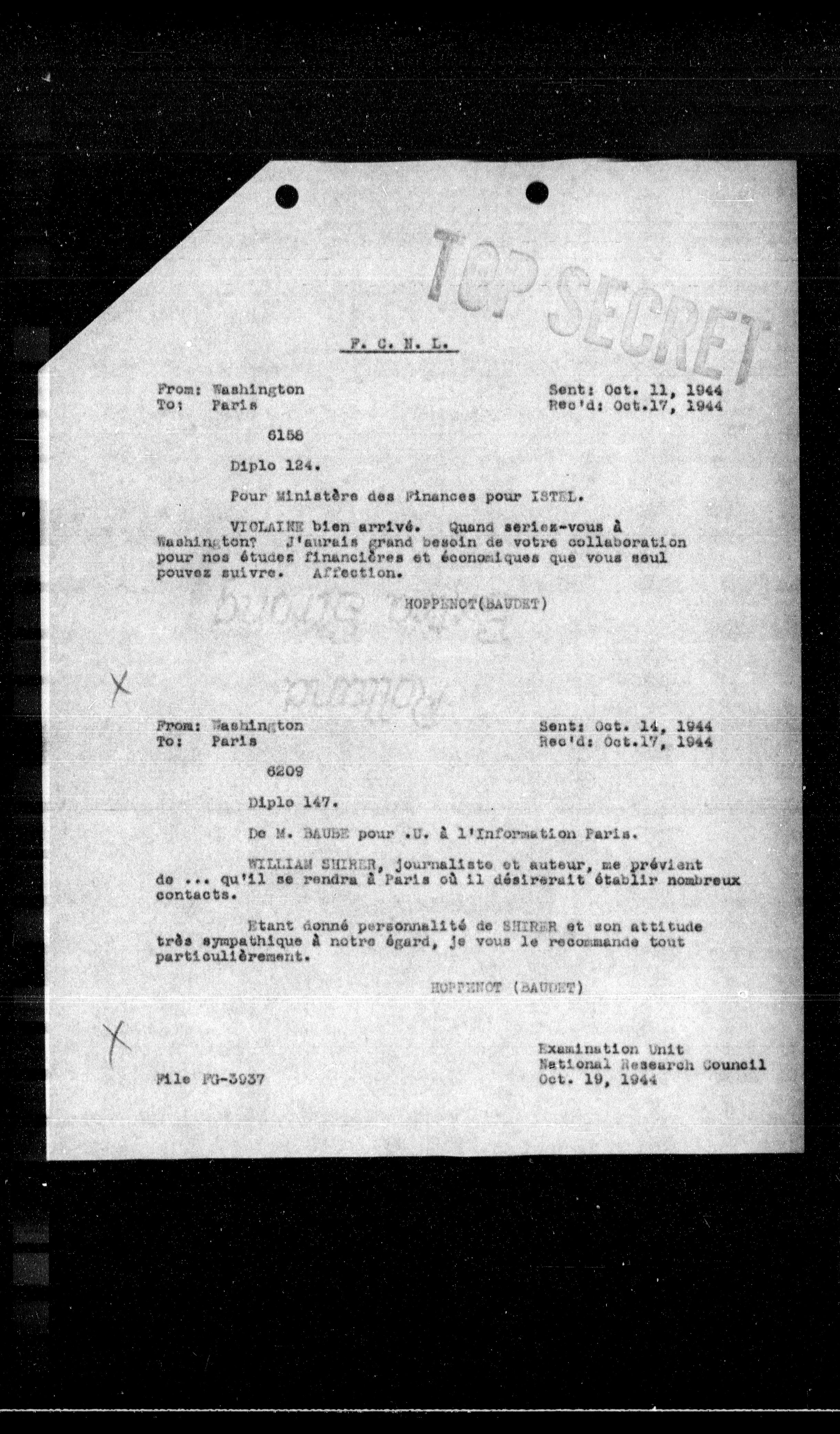 WILLIAM SHIREN, journaliste et auteur, me prévient de ... qu'il se rendra à Paris où il désirerait établir nombreux contacts.