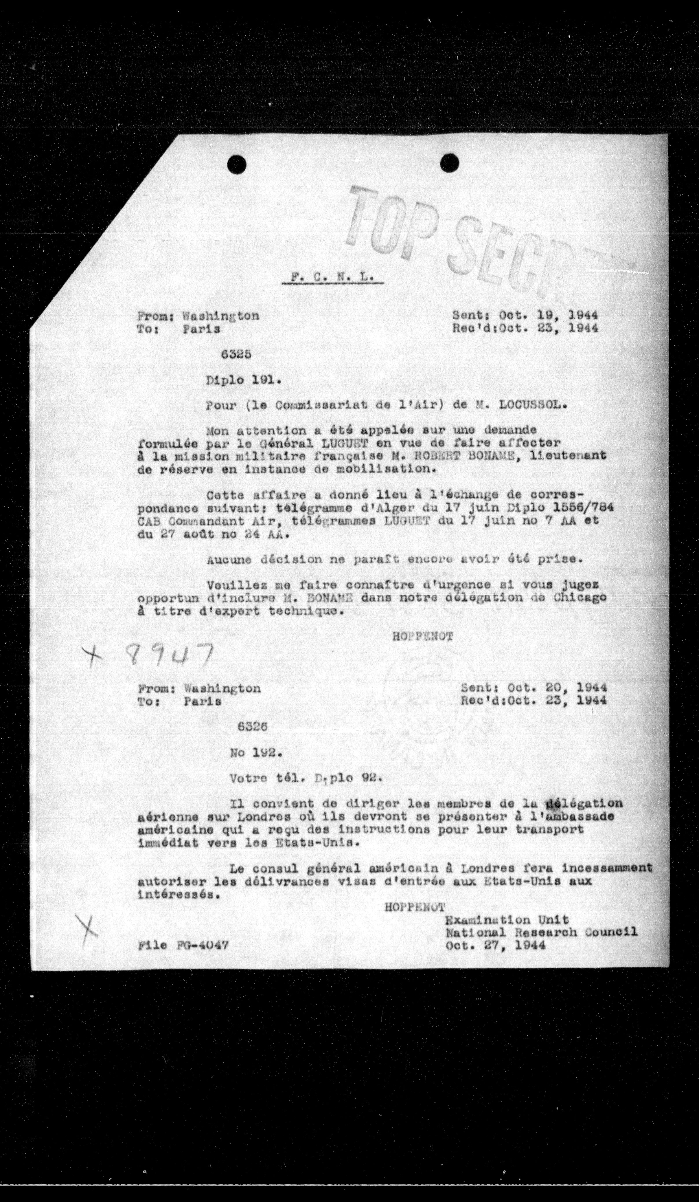 à la mission militaire française M. ROBERT BONAME, lieutenant