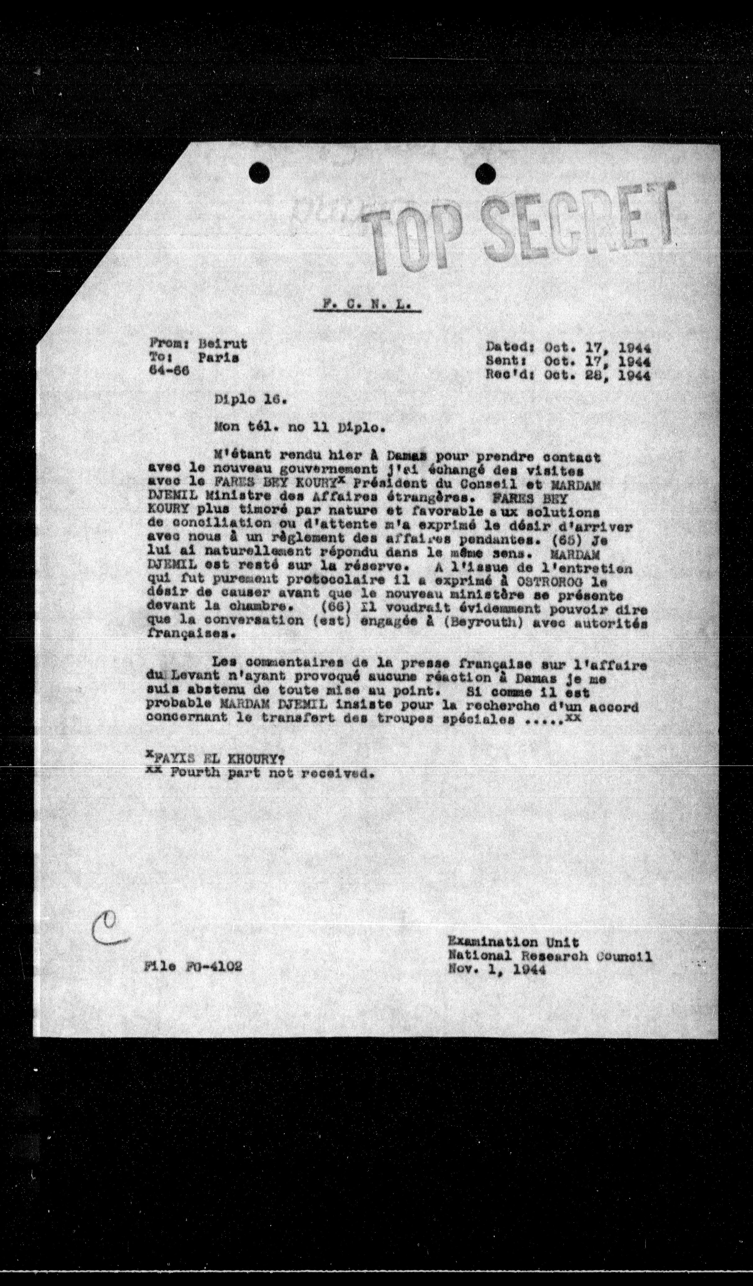 | From: Beirut | Dated: Oct. 17, 1944 |