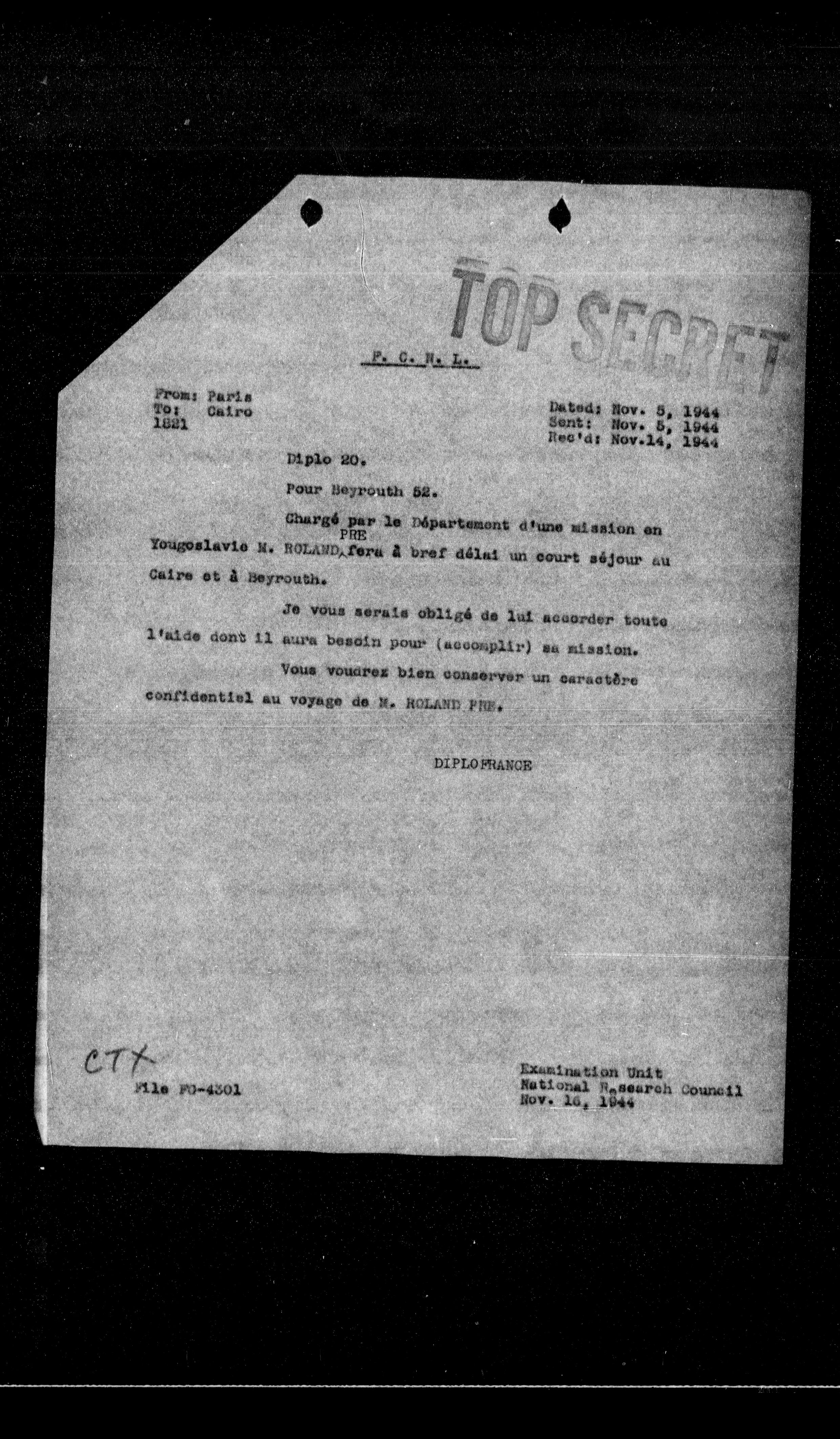 Yougoslavie M. ROLAND, fera à bref délai un court séjour au Caire et à Beyrouth.